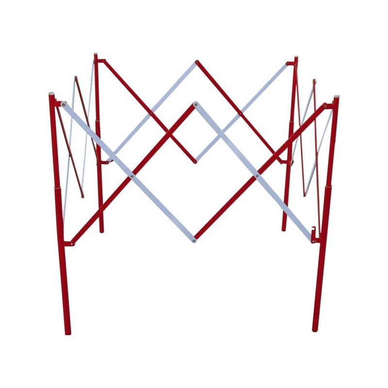Structure pliable en acier peint rouge/blanc. Spécialement conçue pour les bouches d'égout, regards et travaux sur la chaussée. Encombrement réduit après pliage. Hauteur : 1150 mm Long./larg. pliée/dépliée : 200/1300 mm Poids : 11 kg Livrée montée.