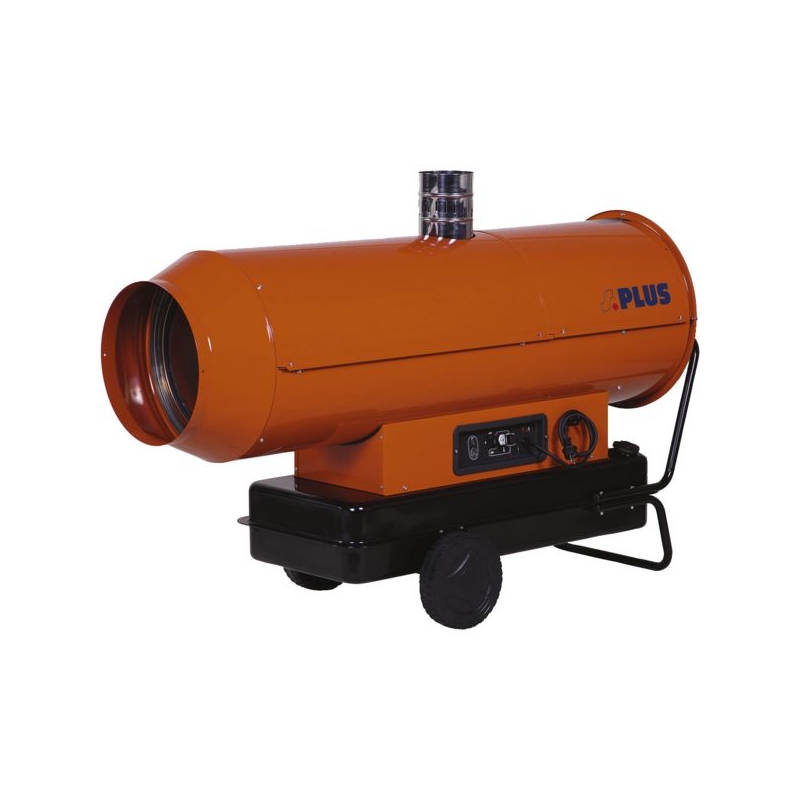 Utilisation intérieure et extérieure. L'appareil peut être positionné en intérieur avec raccordement à un conduit de cheminée pour évacuer les gaz de combustion à l'extérieur ou en extérieur, avec une gaine de soufflage pour amener l'air chaud à l'intérieur. Brûleur à allumage automatique. Chambre de combustion en acier inoxydable avec échangeur à haut rendement pour raccordement à un conduit de cheminée. Sécurité flamme par cellule photoélectrique, thermostat de refroidissement et sécurité de surchauffe. Peut être piloté par thermostat (en option). Carburant : fuel, gasoil ou GNR Alimentation : 230 V