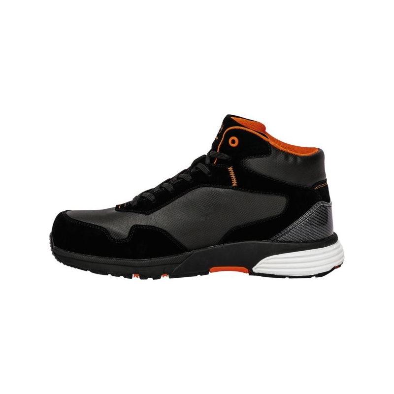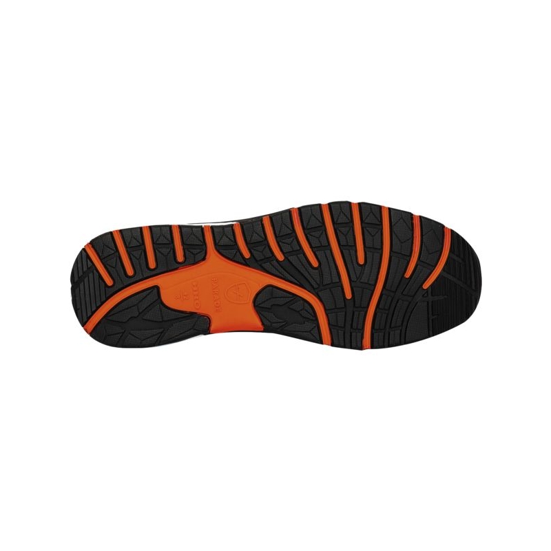 Tige en microfibre et croute de cuir, hydrofuge. Doublure en textile. Première de propreté anatomique et amovible en maille sur mousse PU. Semelle d'usure en caoutchouc / EVA. Semelle antiperforation textile. Embout de sécurité en composite. Poids : 588 g Coloris : noir/orange Pointures : 39 au 48 Norme : CE Cat II - EN ISO 20345 - S3 HRO SRC