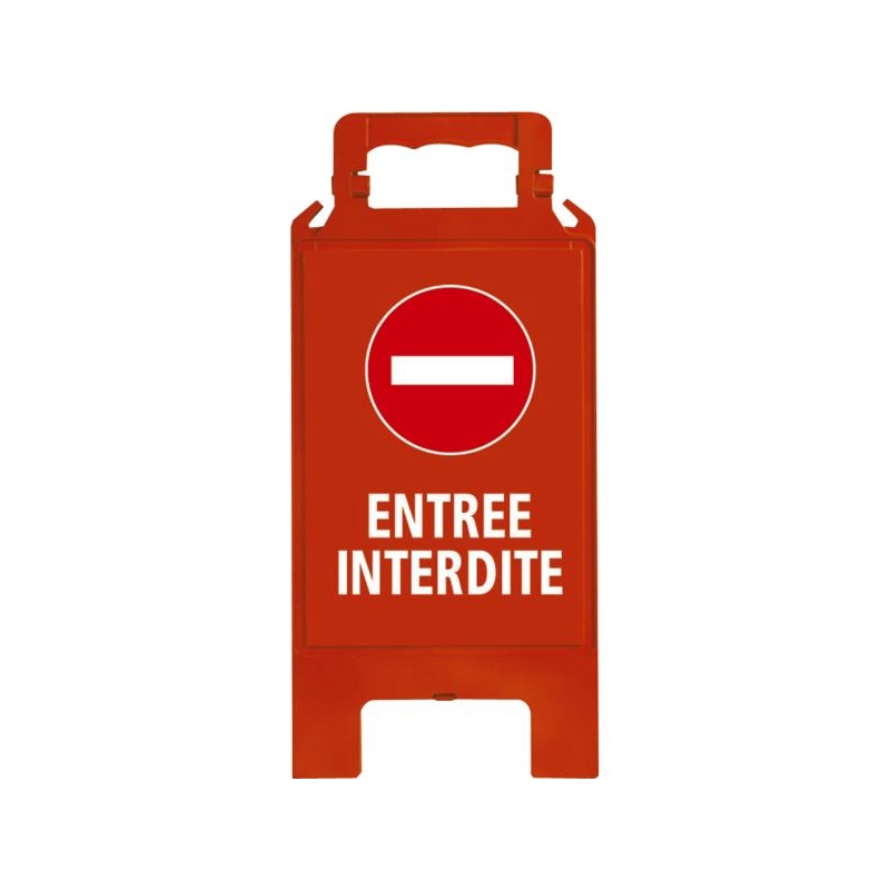 En polypropylène avec renforts de maintien. Utilisation temporaire intérieure et extérieure. Poignée ergonomique, large surface d'impression. Clip de maintien en position ouverte, grande stabilité. Crochets pour chaîne de signalisation. H x l : 600 x 275 mm Épaisseur (plié) : 23 mm