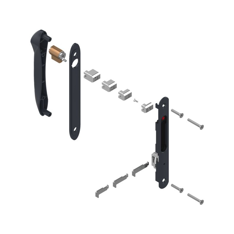 Ferrures adaptables pour plusieurs dimensions afin de répondre aux principaux cas de rénovation. Réglage bi-directionnel du crochet avec vis antidéréglage. Anti-crochetage de l'extérieur, blocage automatique de l'ensemble crochet en position fermée. Réglage du crochet en profondeur par clé 6 pans, course de 5 mm. Réglage latéral, course 6 mm. Kit composé de : - 1 coquille intérieure à condamnation par curseur, fournie avec 3 crochets de longueurs différentes selon distance à la gâche, - 1 poignée extérieure, - 4 paliers selon épaisseur du profil, - 2 longueurs de vis selon épaisseur du profil, - 1 platine intermédiaire, - 1 cylindre. Hauteur : 198 mm Entraxe de fixation : 164 mm Largeur : 24 mm Conditionnement : boite Conforme à la norme EN 13126.19