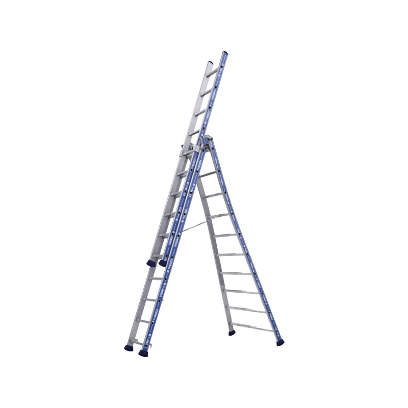Utilisation sur sol plat ou dénivelé, usage ultra intensif. En aluminium. Échelons 30 x 30 mm. Articulation et montants renforcés. Glissière en aluminium avec patins de glissement intégrés. Base évasée pour une stabilité maximum. Sabots enveloppants avec témoin d'usure. Charge maxi : 150 kg Norme : NF - EN 131 - Décret 96 333
