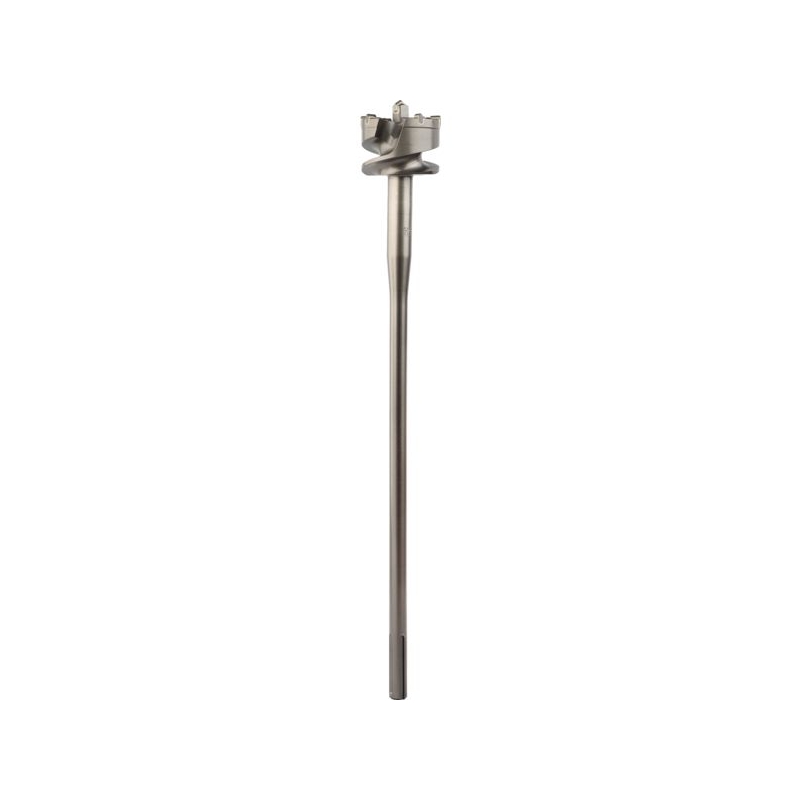 Foret centreur avec plaquette carbure. 4 plaquettes carbure au centre, 6 plaquettes carbure en périphérie. Pour tous travaux de passages de câble, de tubes et tuyaux en rénovation ou en construction neuve. Longueur : 590 mm Emmanchement : SDS-max