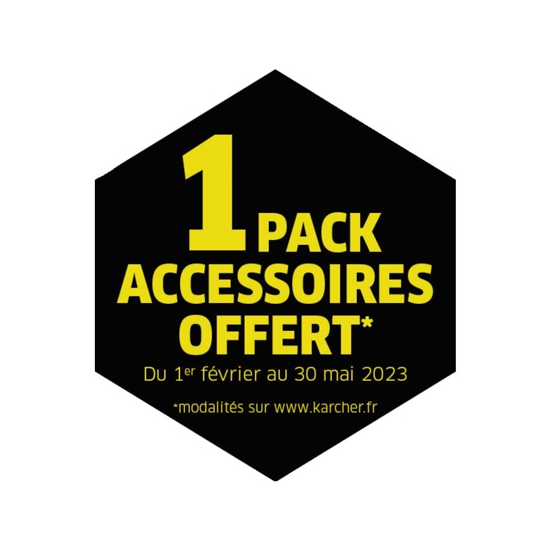 Poignée de transport intégrée située à l’avant de l’appareil facilitant le chargement et le transport. Guidon rétractable par simple pression d'un bouton. Fonctionnement possible à la verticale ou à l’horizontale. Rangements multiples pour accessoires. Poignée-pistolet EASY!Force. Flexible haute pression 10 m. Buse triple, rotabuse. Alimentation : 230 V monophasée Débit : 500 l/h Pression de service : 150 bar Temp. max. eau d'alimentation : 60°C Puissance raccordée : 2,7 kW Poids : 25,2 kg Dimensions : 38 x 36 x 93 cm