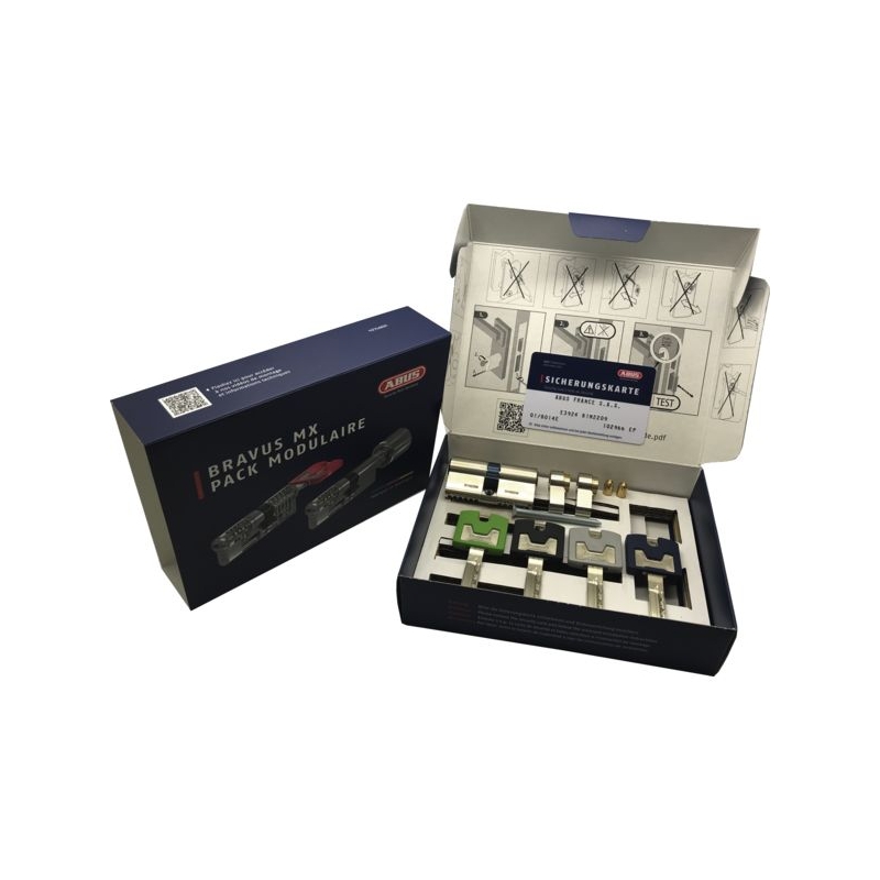 Cylindre à clé réversible. Introduction horizontale, avec 6 goupilles actives et système Intellitec breveté jusqu'en 2030. Protection anti-perçage en acier cémenté et anti-casse avec la version modulaire. Système modulaire ultra simple, qui ne nécessite pas d'outil spécifique. La barre de transformation et d'assemblage des cylindres est en acier inoxydable. Avec ce pack, possibilité de réaliser un cylindre 2 entrées 30*30 mm ou 30*40 mm ou 40*40 mm. Livré avec 4 clés et une carte de propriété. Fonction débrayable de série. Cylindre pré monté prêt à l'emploi en 30*30 mm. Cylindre conforme à la norme DIN EN 1303. Conditionnement : boîte