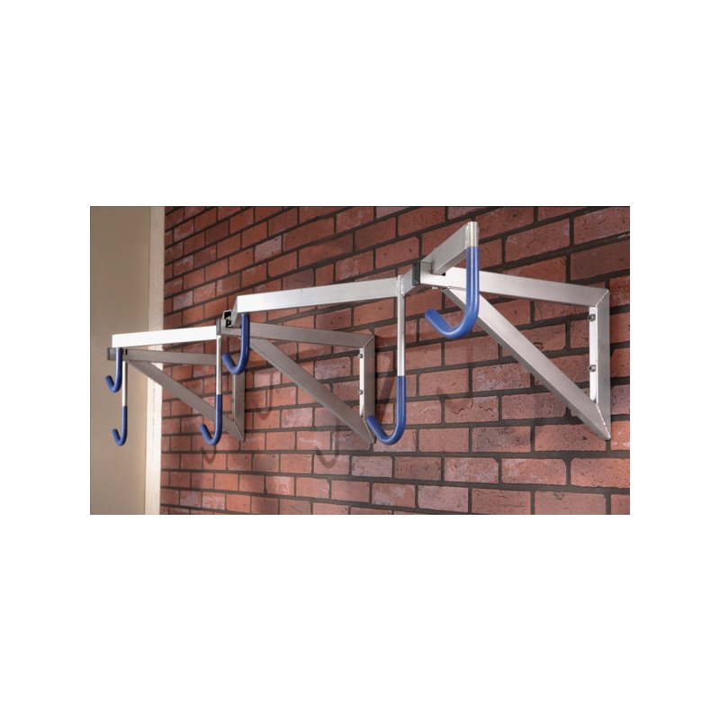 Support mural pour 6 vélos. Solution idéale lorsqu'il y a peu de place disponible au sol. Fabrication solide en acier zingué. Crochets gainés décalés permettant un gain de place maximum. Anneaux antivol. Dimensions (L x H x P) : 200 x 36 x 51.1 cm Visserie non fournie.