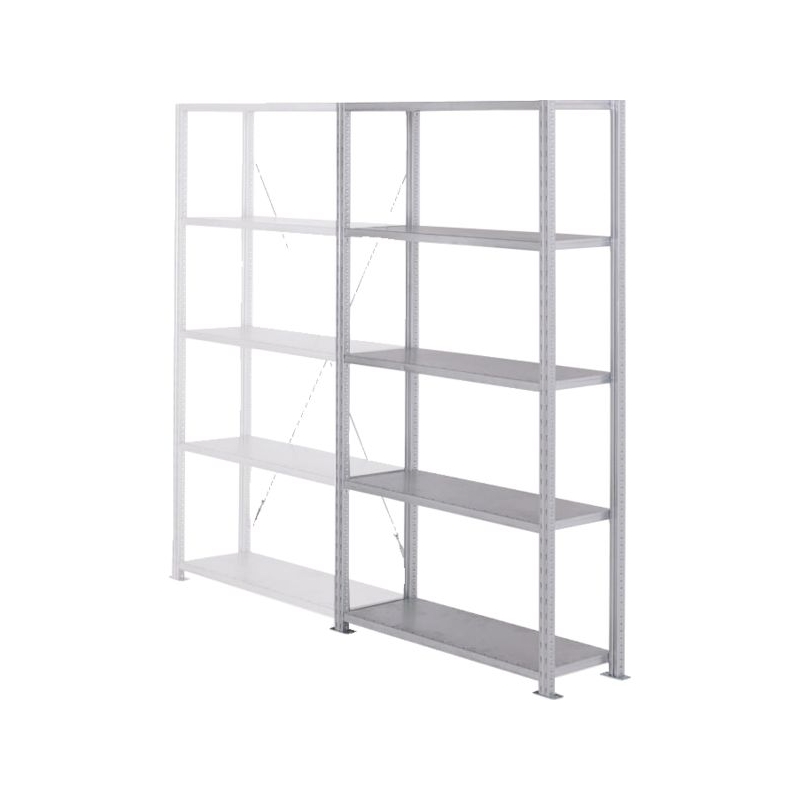 Solution galvanisé à tablettes tôlées. Hauteurs de poteaux jusqu'à 7,5m et 24 dimensions de tablettes. Conçu pour supporter les charges standards ou lourdes grâce au renfort qui permettent un chargement jusqu'à 360 kg par niveau. Finition galvanisé qui s'adapte à tous les environnements (industriel, réserve de magasin, logistique ,etc.) Poteaux et tablettes Galva Dim : 2000 x 1000 mm
