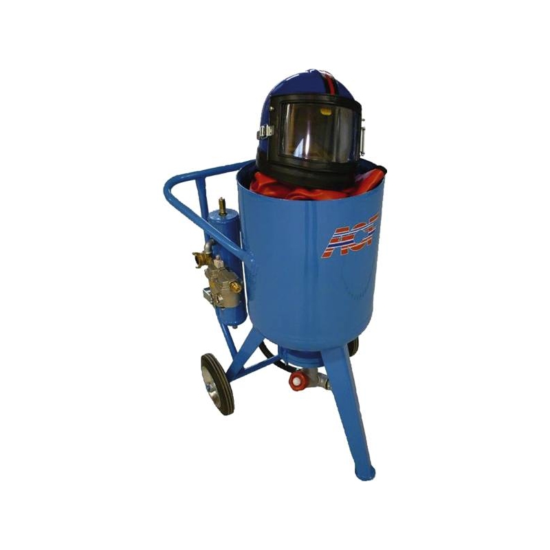 Version complète avec commande à distance. Dispositif de filtration air sur sableuse. Composée de : - sableuse 50 L SF54, - commande à distance, - 10 m tuyau de sablage, - 1 buse de 5 mm, - casque de sablage Bali (réf. 38267) + 10 m tuyau air casque + filtration air casque. Débit d'air mini : 2500 L/mn (avec buse Ø 5 mm)